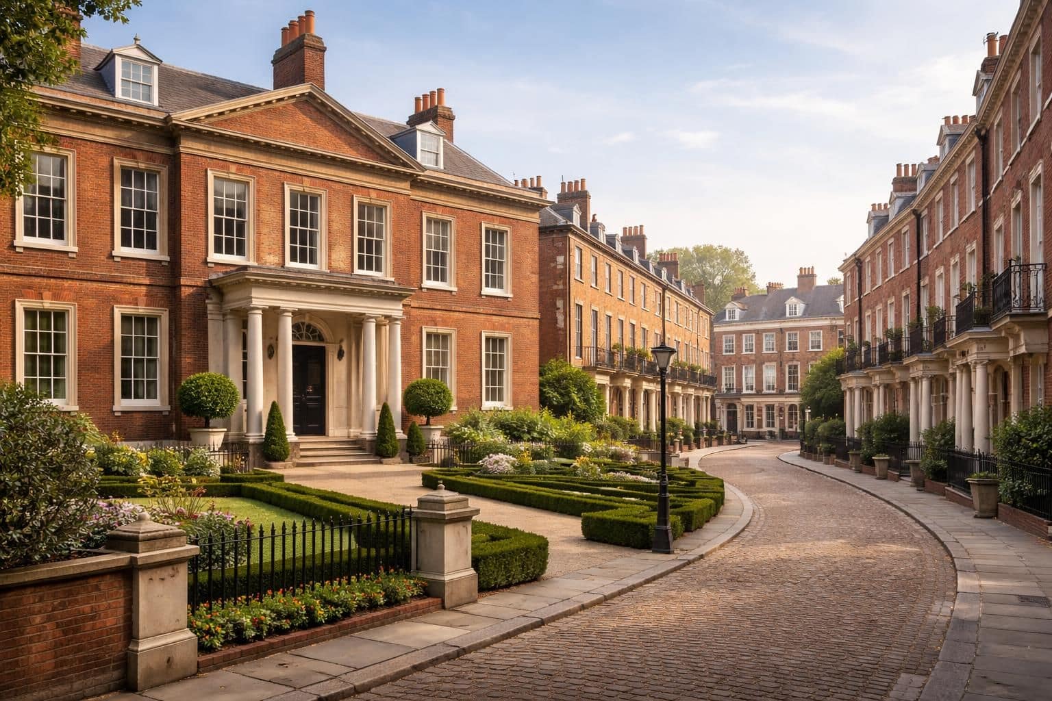 Le quartier de Greenwich est un véritable musée à ciel ouvert, présentant une concentration impressionnante d’édifices de style géorgien. Ses rues, dont King William Walk, Nelson Road et Greenwich Church Street, sont bordées de maisons mitoyennes à la façade de briques claires. Ces constructions, souvent recouvertes d’un enduit léger, expriment une harmonie visuelle typique de l’architecture géorgienne. La régularité des proportions et la sobriété des ornements témoignent d’un désir d’élégance classique.